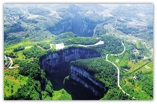 Hố Cầu Trùng Khánh Vũ Long, nằm cách 20 km về phía đông nam, đã lái xe từ thành phố Trùng Khánh ở đây để yêu cầu ba hoặc bốn giờ. Cây cầu đá vôi như vậy và sụt lún đất hố không phải là hiếm, đặc biệt là trong Wulong doline cầu quy mô hoành tráng, được cho là cộng đồng cây cầu đá tự nhiên lớn nhất thế giới.